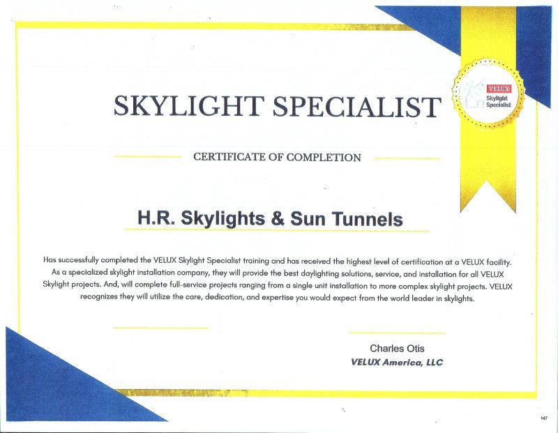 VELUX FIVE STAR CERTIFIED SKYLIGHT SPECIALIST